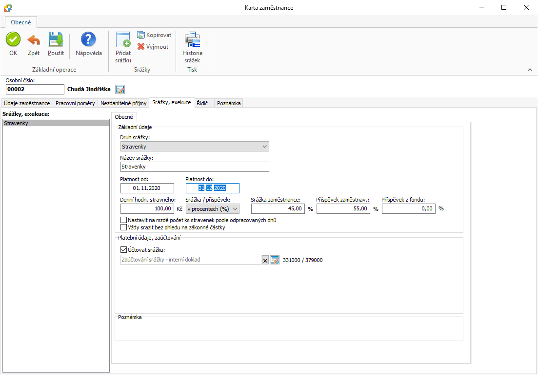 Jedná se především o výpočet nezabavitelné částky, případně srážek, jejich srážení a následné poukazování oprávněnému atd. Máte nárok jen na jednorázovou nezabavitelnou částku ve výši dvojnásobku životního minima tj. Paušální náhrada nákladů pro zaměstnavatele. To se ale týká pouze stravenkového paušálu do „limitu" 75,60 kč za odpracovanou směnu. Exekutor vám může nařídit exekuci na účet i na plat současně. Zaměstnavatelé provádí v rámci výkonu rozhodnutí nebo exekuce srážkami ze mzdy řadu úkonů podle občanského soudního řádu... Odblokování účtu při exekuci není příliš snadné.